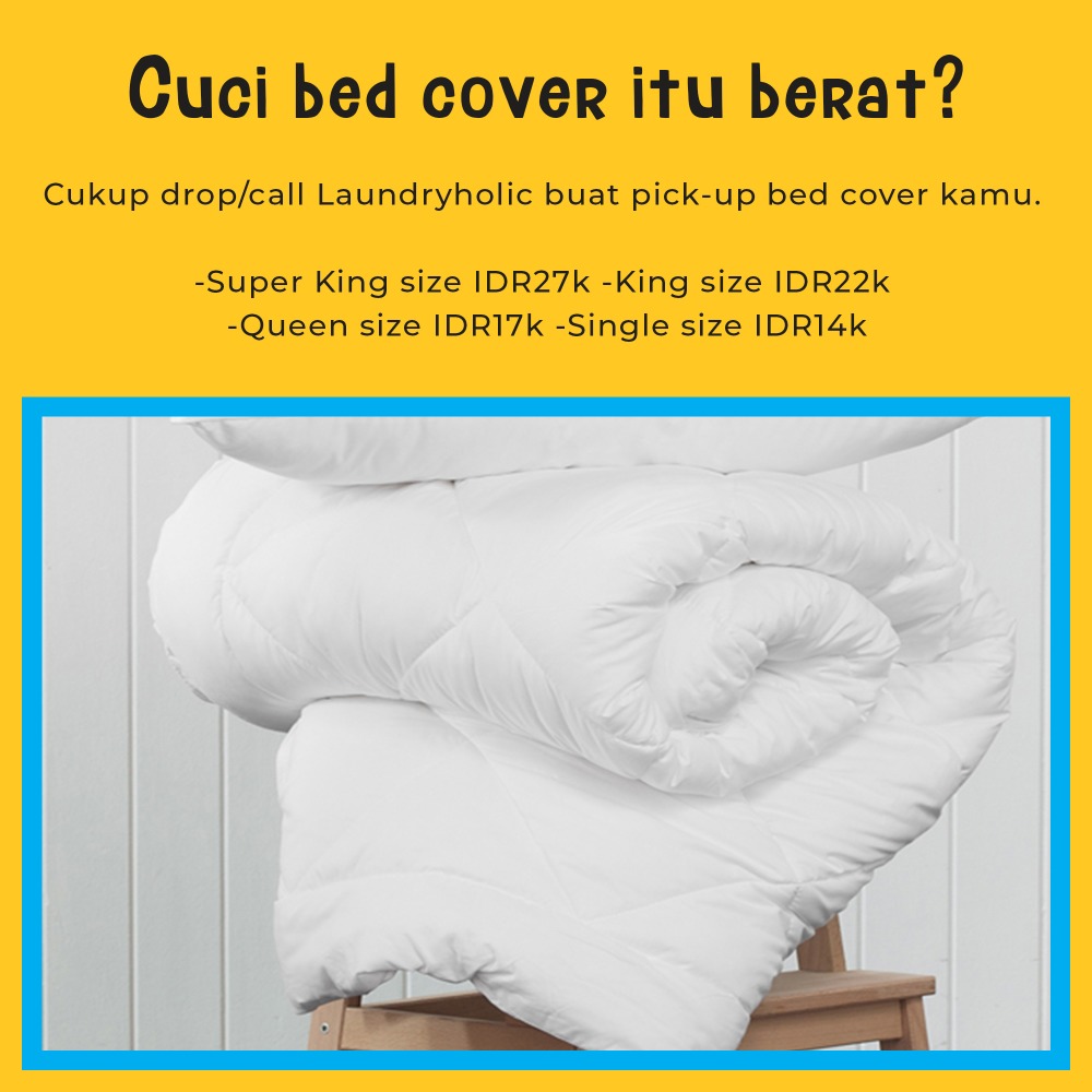 Laundry yang profesional, hasil layanan sesuai dengan yang dijanjikan. Cucian dijemput dan diantar sesuai waktu yang ditentukan. Selain baju, sprei, bed cover, boneka, baby stroller dan tas koper saya semuanya bisa dikerjakan dengan baik oleh Laundryholic. Good job Laundryholic, next mencuci pasti pilih Laundryholic